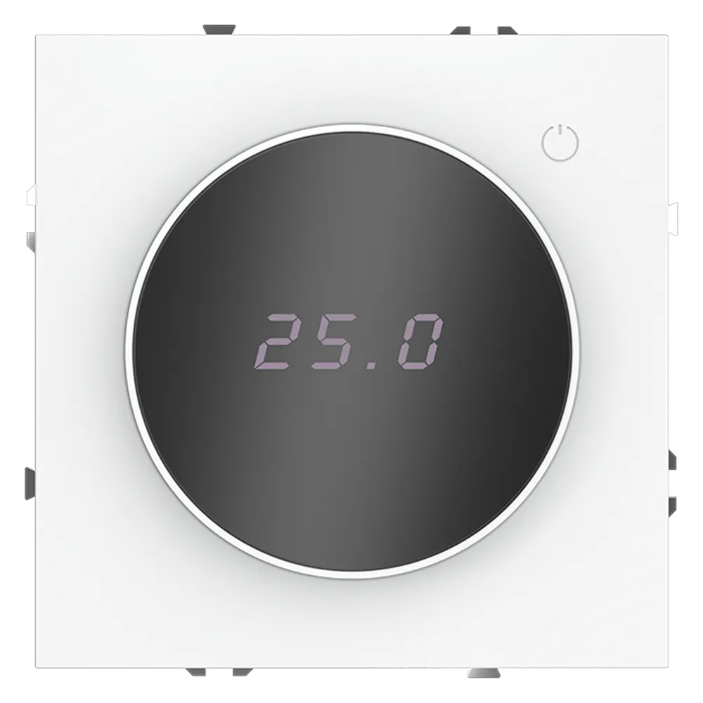 Терморегулятор полностью совместим с пластиковыми и стеклянными рамками серии S70, позволяя создать цельную, стильную композицию на стене вместе с розетками, выключателями и другими устройствами.
